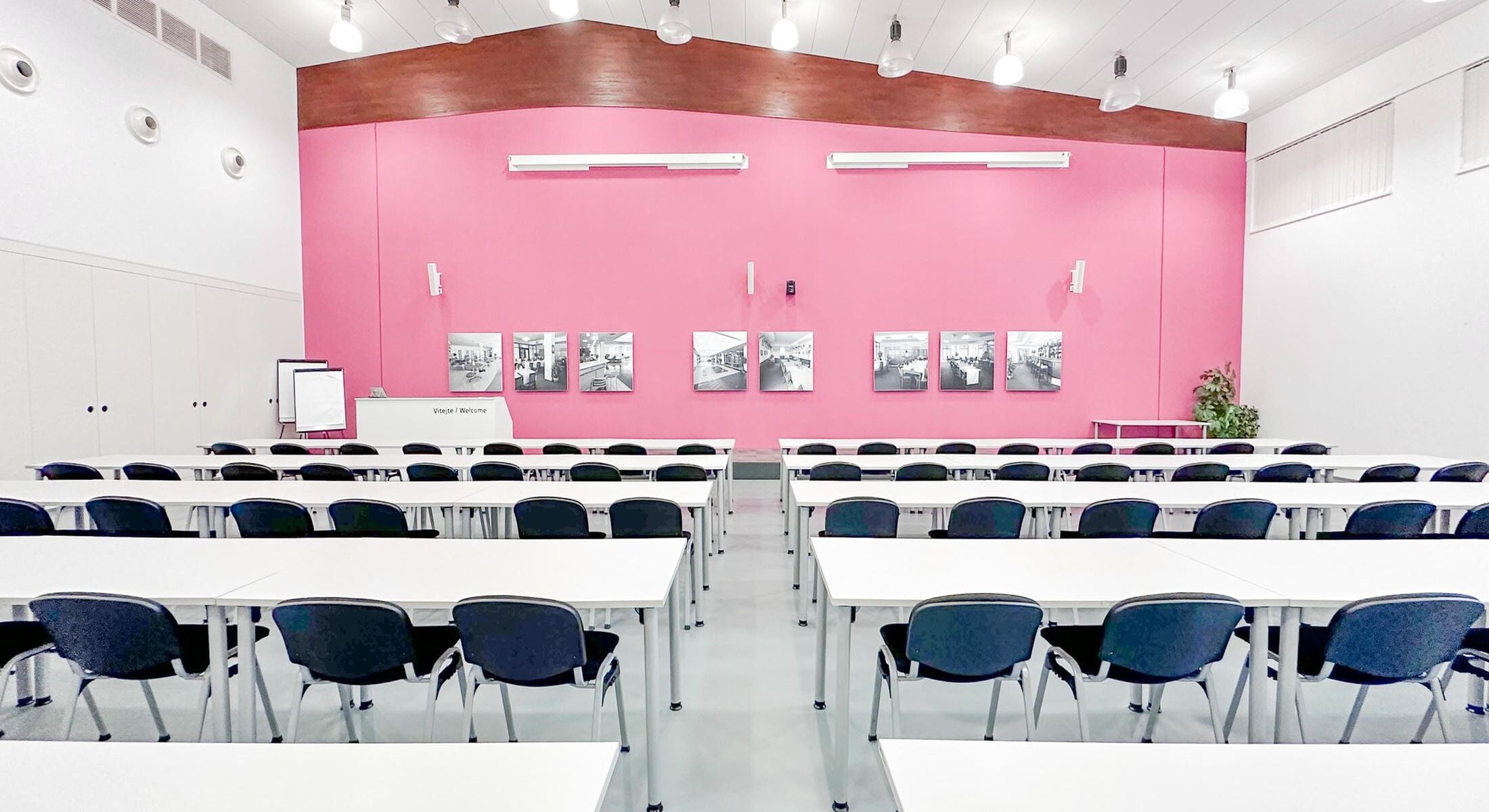 The rental price includes technical equipment such as a data projector, flipchart, and high-speed wireless internet connection. The listed price is final and includes unlimited use of the hall.