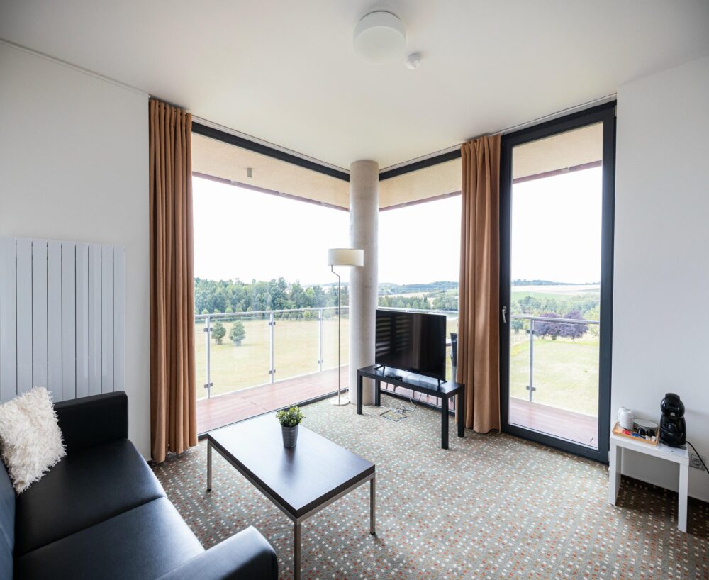 Nabízíme vám prostorné apartmány s velkým balkonem a krásným výhledem do obory se zvěří. Apartmán je ideální volbou pro rodiny, delší pobyty i hosty, kteří si chtějí dopřát maximální pohodlí.