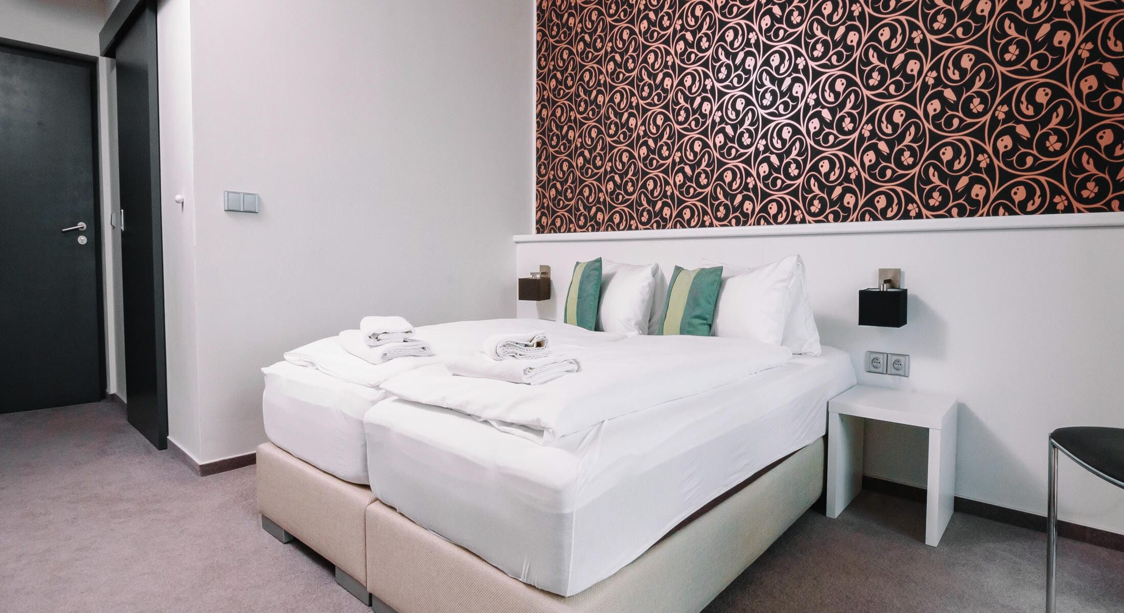 Nabízíme vám moderněji vybavený pokoj Standard DeLuxe, který potěší všechny, kdo si chtějí dopřát vyšší úroveň komfortu. Pokoje jsou zařízené v moderním a elegantním stylu a nabízí vše pro pohodlný pobyt. Samozřejmostí je klimatizace, plazmová televize, Wi-Fi připojení, komfortně vybavená koupelna i chladnička. Myslíme také na hosty s omezenou pohyblivostí – k dispozici máme i bezbariérový pokoj.
