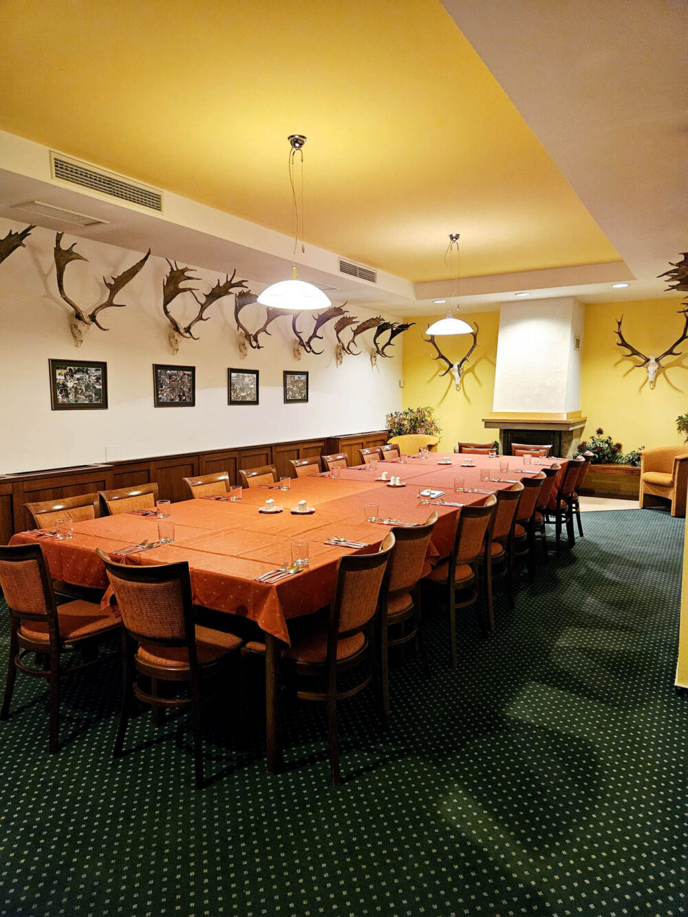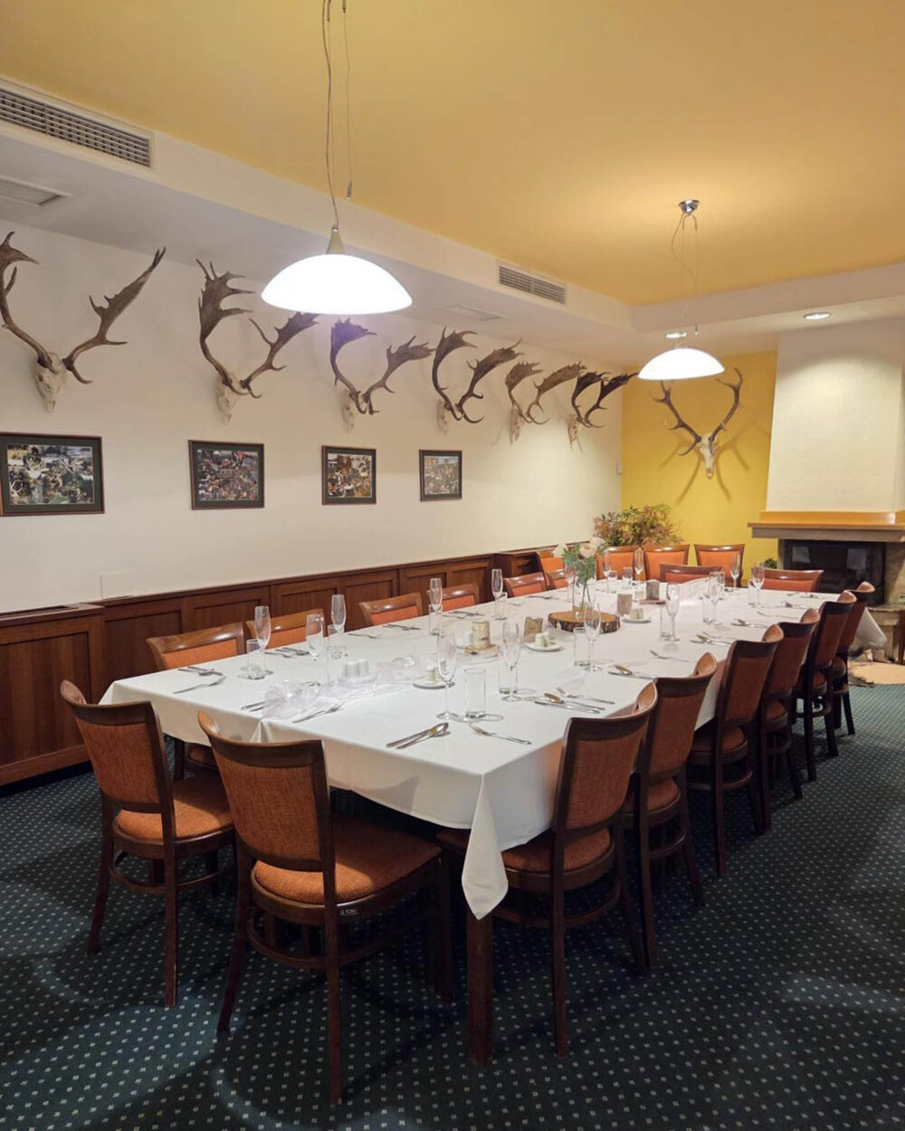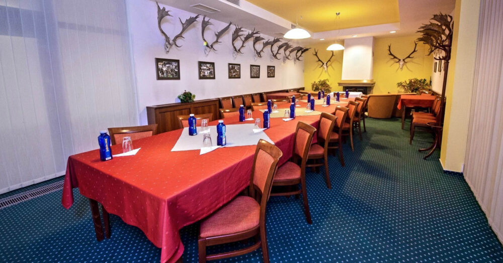 Lovecký salonek nabízí komorní prostředí s krbem a stylovým vybavením, ideální pro menší porady, jednání nebo neformální setkání v klidné a příjemné atmosféře. V ceně pronájmu je zahrnuto technické vybavení – dataprojektor, flipchart a vysokorychlostní bezdrátové připojení k internetu. Uvedená cena je platná za den a zahrnuje veškeré vybavení salonku.